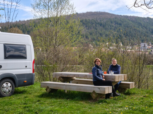 Das Hörnli reisst plötzlich das Steuer nach links. Was ist denn jetzt los? Ahaaaa, Adria. Der Premium-Hersteller von Wohnmobilen und Kastenwagen befindet sich am Stadtrand von Novo mesto. Die Firma, die heute mehr als 1100 Mitarbeiter beschäftigt, wurde 1965 im damaligen