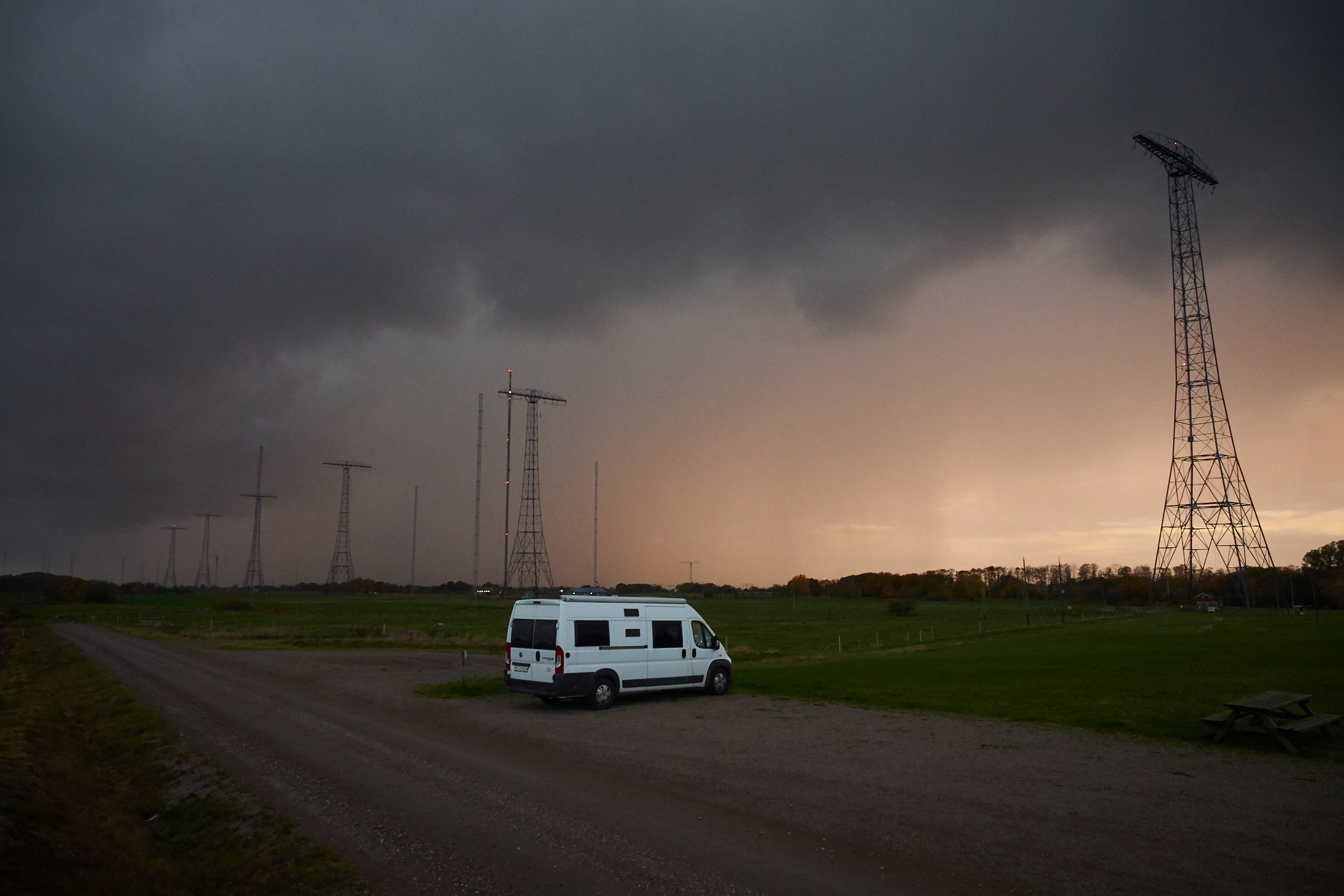 Varberg fängt für uns auf der benachbarten Halbinsel Getterön an. Dort steuern wir einen schönen Parkplatz am Meer an und wollen den Regen aussitzen. Dass das nicht so gut funktioniert, kennen wir ja schon von unserer Unterwasser-Mission in der Toskana.